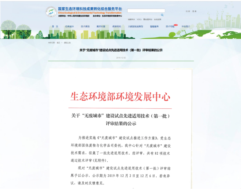 2019 年 1 2 月 2日,国家生态环境科技成果转化综合服务平台发布了关于“无废城市”建设试点先进适用技术(第一批)评审结果的公示,湖北OB视讯(中国)科技股份有限公司研发的“污泥闪蒸干化耦合热解气化技术”成功入选。 召开 “无废城市”建设试点是深入落实党中央、国务院决策部署的具体行动...MORE →