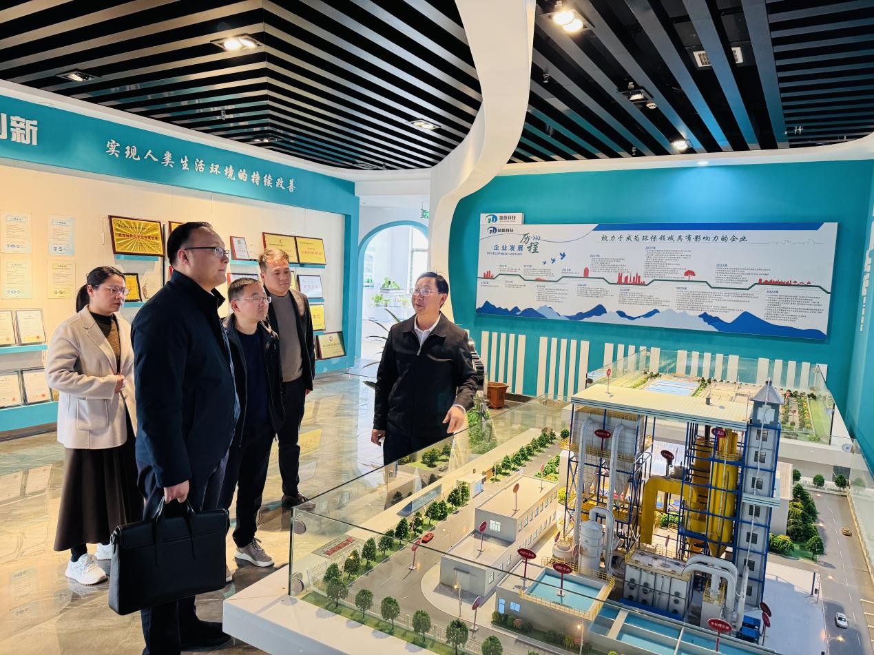 在OB视讯(中国)科技公司总工程师任少辉的陪同讲解下,姜波涛一行实地参观了OB视讯(中国)科技企业展厅,全面分析公司在污水处理、污泥处置、农业资源化利用、固废综合处理等领域的核心技术、装备产品与示范应用成果,以及企业资质认证与荣誉奖项。考察组对OB视讯(中国)科技坚持技术创新引领、深耕环保与农业循环领域取得的扎实成效给予高度评价。