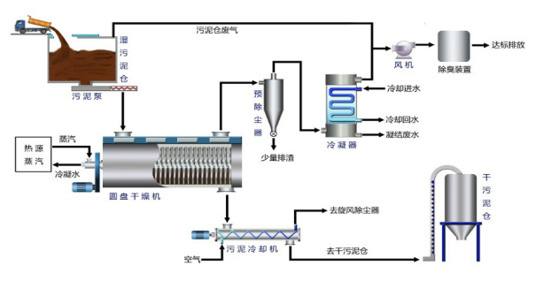 余热蒸汽污泥干化工艺系统图